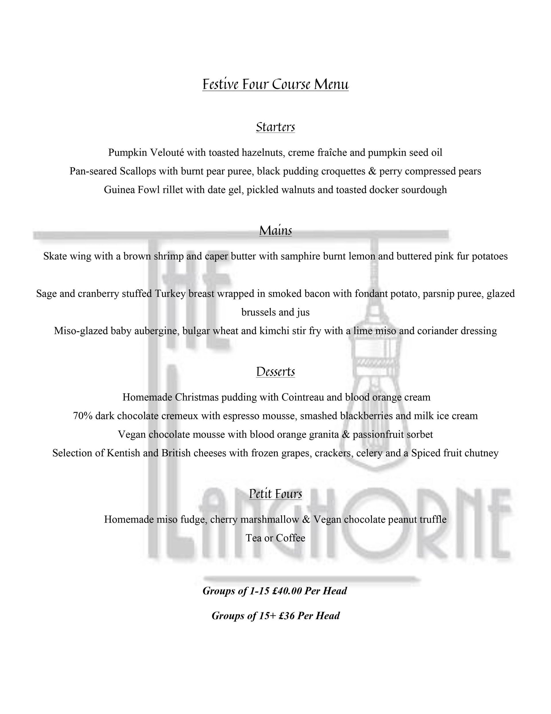 Our Festive Four Course Menu for 2023 will be available from 1st until 23rd December.